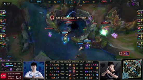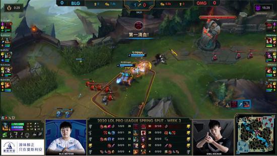 双方下路升到6级都向上方河道靠近,虽然盲僧早早击杀了峡谷先锋,但奥恩大招顶飞落单的辛德拉,EZ拿到人头。BLG前期上野辅频频联动,先后击杀剑魔和辛德拉,15分钟尝试找回节奏的OMG中野下路四人推进BLG下路一塔,蕾欧娜闪现E到辛德拉开团,BLG秒杀辛德拉配合奥恩大招打出0换3反推了OMG下路一血塔。大龙出生前BLG推平OMG三路一塔,经济领先3千。