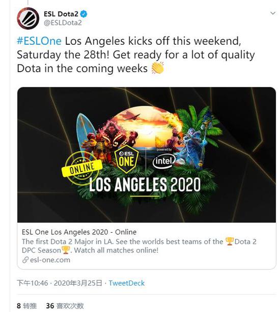 有关#ESLOne# 洛杉矶站2020#Dota2# Major以及#ESLOne# 伯明翰站2020的最新消息: