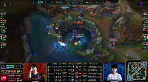 第二局比赛FPX拿到最近很火的潘森蜘蛛组合,并且在英雄属性上克制对位的琪亚娜艾克,选人开始FPX已经赢了一半。开局仅仅3分钟,小天蜘蛛先行来到下路越塔,随便Doinb潘森也赶到将BLG下路双人击杀。6级潘森再度飞下,BLG下路炸穿。14分钟FPX入侵BLG蓝BUFF野区,经济领先的FPX轻松完成1换3。BLG打又打不过,拖又拖不住,陷入了慢性死亡的局面。21分钟经济领先6K的FPX直接中路抱团破掉高地塔,随后又拿下土龙魂。最后一波FPX假装开大龙,吸引BLG五人前来,一波0换3之后小天用命拖住Fofo时间,队友直接拆掉基地,FPX将比分扳平