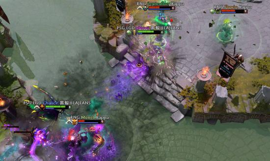 先输一局的情况下,LGD在第二局点出了Maybe的TA、查理斯的龙骑士和老11的先知。另一边,RNG则是拿出了莫奈特的大哥军团、Setsu的蓝猫和Flyby的骨法。开局一分半,包爷的亚巴顿在上路拿下一血。一分钟后,土猫游走中路,配合TA的输出拿下了蓝猫的人头。八分钟的下路团战,先知用大招打出爆炸伤害,骨法阵亡。第二时间,亚巴顿也被LGD留下。不过在一分钟后,Setsu的蓝猫切入战场,先杀先知后杀龙骑,一波干掉了LGD的两个大哥。