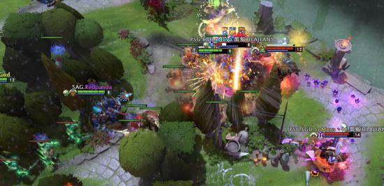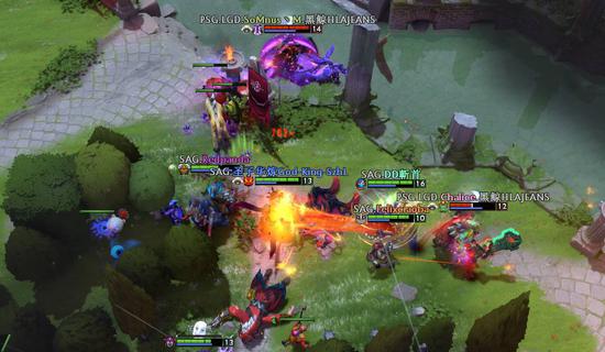比赛开始前,有一个决定选边的Solo赛,今天的对阵是Fy操刀毒狗打Felix的老陈。至于为什么会是这两个英雄Solo呢,答案是观众投票的结果。和想象中一样,毒狗在三分钟的时候给老陈上了五层毒,一套技能下去送老陈归西,Fy取得了Solo赛的胜利。不过在接下来的BO3中,LGD在两局比赛中的发挥都不是特别理想。第一把被DD斩首的TA一波捅穿,第二把拖了44分钟,老11的伐木机送到超鬼。二比零,SAG爆出了一个惊人的冷门。