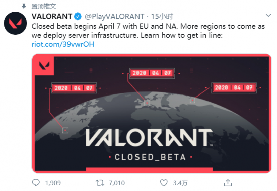 原文大意如下:“游戏内测将于4月7日在EU和NA开始。随着我们服务器的部署架设,后续会有更多内测区域”