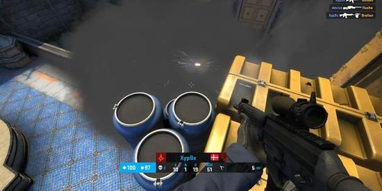 下半场手枪局,瑞典人进攻B区,KRIMZ走到一半突然感知到玻璃后溢出的强烈杀气,先下手为强的他直接活活穿死Xyp9x。随后强起的CT惨遭Golden和JW重拳出击进入eco。
