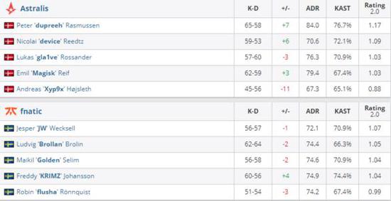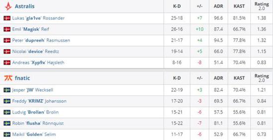 Astralis好起来了,比分来到8-13,gla1ve走出A门打掉flusha,device和Xyp9x也各自拿到人头直接拿下A区追到第九分,fnatic直接叫出暂停。然而来到进攻方的Astralis几乎不可阻挡,直接将比分扳到11。第二十五回合,半起的KRIMZ手枪配合队友拿到关键性的四杀,当仁不让的gla1ve以牙还牙,一记三杀迫使对方再次丢出暂停。变换阵型的fnatic没能针对到在A大集合的丹麦人,面对13-14的焦灼比分,买出长枪的瑞典人终于拿到了最重要的赛点。最后一回合,成功骗防的Astralis没能打赢最后的C4守卫战,以微弱的劣势输掉图一。