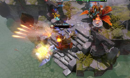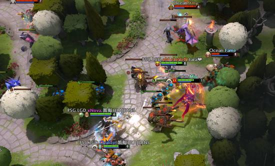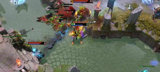 然而,意识到问题的LGD很快就发动了一波袭击。六分钟不到,LGD就在中路集结了四名英雄。这波突如其来的快攻把海洋打的猝不及防,蓝猫阵亡后,局势重新进入LGD的掌控。这个阶段,先知的高机动性让LGD得以在地图上迅速集结。动不动就是五打三、四打二,海洋陷入了完全的被动。直到十分钟,ZC的蓝猫才加入了战斗。正面五打五的情况下,海洋终于将LGD赶出了自己的野区。不过,这波小挫折不但没有让LGD知难而退,两分钟后,LGD又发起了新的进攻——还是经典的先知以多打少节奏,海洋在错误的时间接了一波错误的团战。
