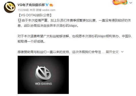 VG战队官方宣布了他们由于疫情严重,将缺席本次洛杉矶Major预选赛。以下是官方公告: