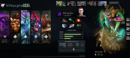 至于BO3的第二局,Nigma在线上取得的优势比VP上把更加夸张——六分钟经济领先三千块,这样的数据在高水平对抗中实属罕见。再往后打,奇迹哥的美杜莎在14分钟做出分身斧后直接拉了一把圣剑。20分钟,美杜莎剑盾成型,VP被Nigma一波打死。
