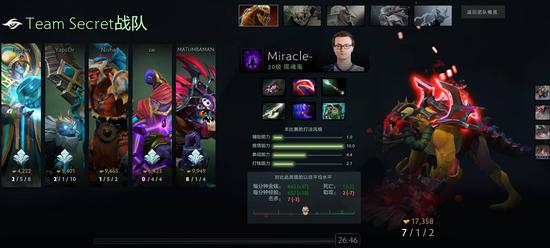 不知道秘密是不是觉得三比零的结局比较无聊,不如现场整活——第三局,秘密在最后一手选人中给Zai拿了一个三号位龙骑士。比赛中,这个龙骑士既不是出跳刀的先手龙骑,也不是出笛子的团队龙骑。14分钟的时候,Zai竟然摸出来了一个陨星锤!出陨星锤的三号位龙骑士,在正儿八经的职业比赛中,我是第一次见。尽管MC的兽王一度被秘密打成自闭,但兽王再不济至少还有个光环,这个三号位陨星锤龙骑士,打了20分钟却毫无作用。再加上Nigma这局的节奏极快,奇迹哥的老鹿没有给秘密任何喘息的机会,就攻破了他们的高地。