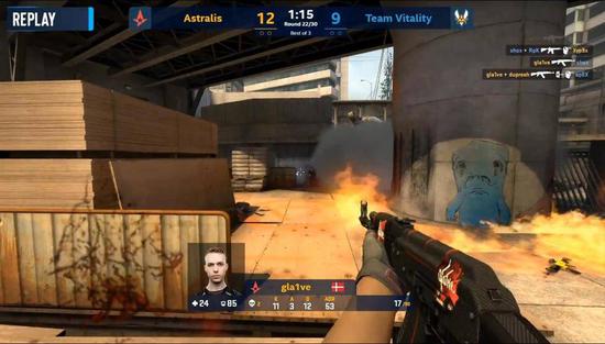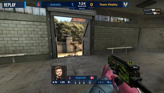 Vitality叫出暂停后选择了一波慢摸A区,但是Astralis一波前顶击杀断后shox,接着重防A区再次守住。上半场终局,Vitality选择下水道工地同步一波清掉3人,顺利拿下这分,比分来到9-6。