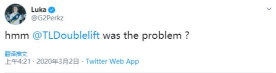 在Broxah回归后,TeamLiquid还是跌跌撞撞,每周都只能获得一胜一负的成绩。2020LCS春季赛第六周,Doublelift因病暂时休养,替补小将Tactical代替他登上了赛场,结果TL一扫之前的低迷,直取两连胜。G2战队的Perkz为此还调侃了一下大师兄:原来你才是那个内鬼?