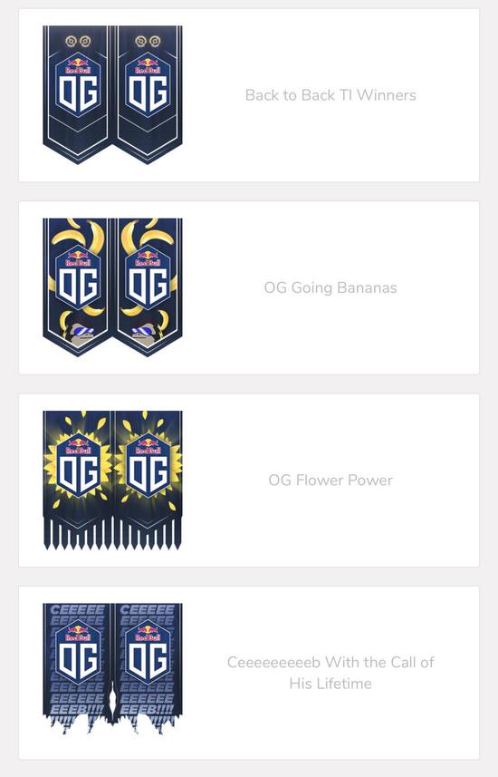 同时购买令牌的用户,可以为OG这个赛季的采用哪个战队锦旗横幅的进行投票,分别是: