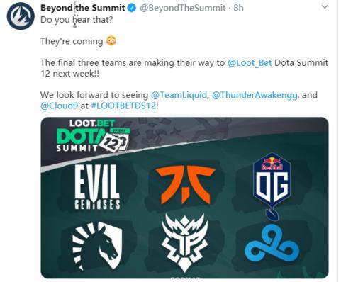 在今天凌晨,巅峰联赛S12的主办方the Summit本次赛事的所有参赛战队,他们邀请了Thunder Predator、Team Liquid和Cloud9三支战队参赛。Thunder Predator是本次洛杉矶Major南美区的出线队伍,能在预选赛力压beastcoast头名出线的他们还是有一定实力的,而Liquid在错失了本次Minor/Major参赛资格后,也需要一场比赛来找找状态,同样的还有新成立的Cloud9,他们也急需对自己的实力有所定位。