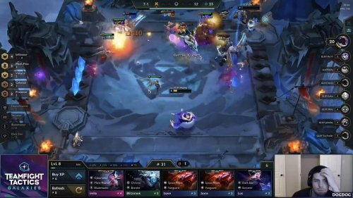 在比赛方面,在首日对决中,斗鱼梨落开局以六法银河机神稳定开局,在前期取得了绝大的血量经济优势,不过因为这个阵容在中期的输出能力太差,梨落在中期转型不顺,最终让原本连胜的梨落最终倒在了第四的位置上,而选手Superjj狙神阵容在第一局大放异彩,虽然前期血量并不占优势,但是最终凭借着3星寒冰的BUG输出成功锁血,以2滴血的极限成功吃鸡。