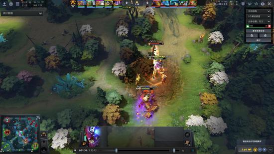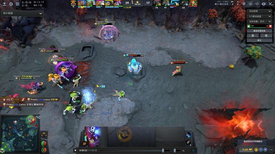 17分钟,OG.Seed抓死火猫后,追杀老奶奶。幽鬼,沙王,紫猫三人没有注意站位,被iceiceice老奶奶回身一跳晕了三个。巫妖,敌法及时跟上大招打了对面一个3人团灭。
