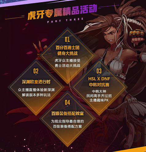 从以阿波菲斯为终极武器而追寻的60版本,一路颠簸,十年漫漫的地下城冒险之路,终于来到了八百万勇士期待已久的LV100版本:鬼剑士三觉,全面升级的深渊系统和更为神秘的副本,吊足了玩家们的胃口。虎牙直播也在DNF100级版本开放之际,召集了大量人气主播,开启了第一期战阶活动,与勇士们一起喜迎全新挑战。