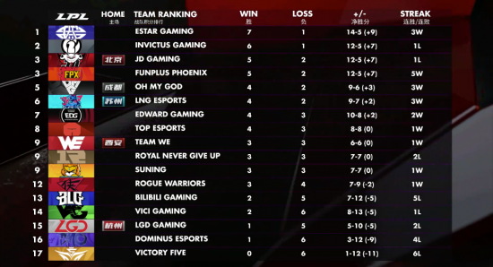 北京时间2020年3月24日,LPL常规赛继续进行线上赛的赛程,目前LPL战队积分榜如下:
