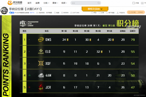 2020年4月3日,PEL和平精英职业联赛季前定位赛总决赛首日火热开战。没有淘汰压力,所有战队放开手脚在决赛舞台火力全开。虎牙大军更是旗开得胜横扫八荒,在老牌豪强ELG的强势发挥带领下成功霸榜,最终四支战队杀入积分榜前五拿下开门红,他们再次展现虎牙大军的恐怖统治力。但首日最大赢家却是黑马战队GM5,凭借连续的天命圈眷顾以及关键时刻果断出击,他们豪取三个蛋糕暂列积分榜首。