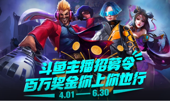 4月1日至6月30日,国内知名游戏直播平台斗鱼直播开启百万奖金悬赏令,全网招募游戏主播,只要每月排名新秀榜单前一千的主播,共同瓜分百万奖金,活动持续时间三个月也就是三期。