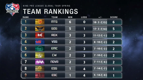 KPLGT春季赛常规赛第二周的比赛如期进行,MTG猛虎队在南京Hero旧将久龙的带领下,拿到恐怖的六连胜,连续两周霸榜积分榜榜首,老牌强队GOG同样发挥不俗,3:0强势零封ESC,两周比赛共拿到五场比赛胜利让GOG稳坐积分榜第二的宝座!VSG在第二周最后一天的比赛中3:1战胜强敌ROX进入积分榜第三,下面让我们一同回顾选手们第二周的精彩表现吧!