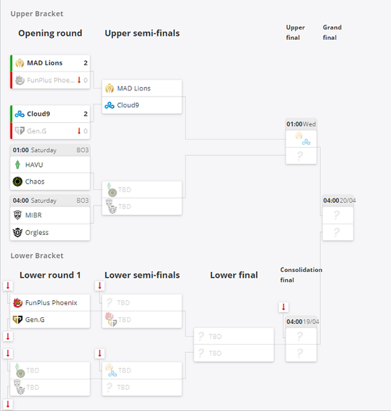 FLASHPOINT S1今日淘汰赛正式开打,率先出场的是两支北美队伍Cloud9和Gen.G,双方实力相近,两张地图上打得都很胶着,可惜今天Gen.G运气略逊一筹被0-2抬走。另外一边MAD Lions对阵与自己硬实力有差距的FPX,图一惊险拿下后图二直接碾压对手。