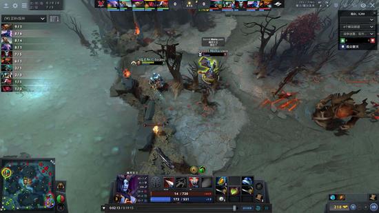 眼见局势比较优,Secret决定速战速决。龙骑裸了一把跳刀,火猫掏出了大骨灰,女王也死灵书到手。跟着跳刀龙骑,Secret抓人拿塔,节奏相当好,双方经济差距也逐渐拉开到了9K。