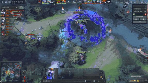 12分钟,VP.P船长为了控符在河道被小牛封路,船长原地放出幽灵船勉强逃生。见Secret追击船长阵型密集,虚空便跳了过来想要放大,但是小牛反应极快的一个回音击打断了虚空的抬手,谜团跟上黑洞,吸住了敌方三人,女王再给一个大招,完美的团战交响曲,打了对方一波小团灭。