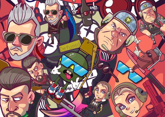 简介:《CSGO精英总动员》Phase I 鼠标垫篇:将CSGO新推出的4位大师级精英探员进行卡通化,结合一些武器及道具元素而构成的《CSGO精英总动员》系列作品。因为卡通化了所有4名大师级探员,所以叫精英总动员。采用了探员卡通形象为主体,结合游戏内的一些特色物品,多种配色适合不同的审美需要,部分配色作为展示,如果有幸实体化,也可后期再多出些配色以及增加些元素以展现更充实丰富的画面。PS:三个伤害性投掷物也算是道具里的精英,所以把他们卡通化为《手雷三兄弟》。有元素大集合,主视觉的色彩变化,以及各个探员作为主体SOLO的展示,还有大头像版本。贴心的准备了粉色少女心配色和原谅绿配色(想要分数来提高,少女粉色不能少,要想段位上的去,外设就得用点绿:D)。的作为一个近5000小时的老玩家,能够为所热爱的游戏创作也是一份乐趣,虽然时间比较紧,也算是大致完成了设想的作品,如果时间更充裕,也会添加更多元素和扩展。稍后上传T恤和其他周边版本的篇章。谢谢观赏,请支持我一下吧! (??? ????)