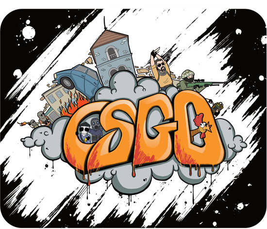 简介:谁还不是个烟中饿鬼了。 设计元素:根据CSGO里的重要投掷物烟雾弹结合欧美涂鸦,创作涂鸦风格的鼠标垫图案,包含CSGO游戏要素,A大车位火,混烟,烟中下包,背后刀人等。 希望大家都能灵活使用烟雾弹,做一个烟中收割者,天天都是上分的好日子!