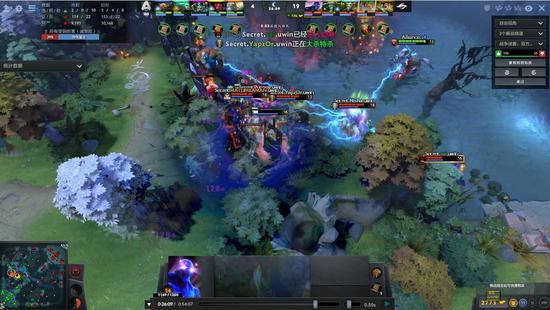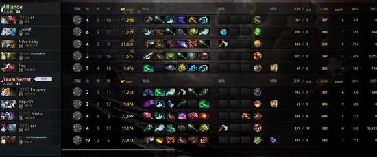 31分钟,Alliance一波打到Secret高地,,猴子高地上击杀光法,撤退之时先知被留。Secret卷土重来。35分钟,拍拍抓到带线斧王,牛头光法抓到带线先知,秘密经济再次达到22k。