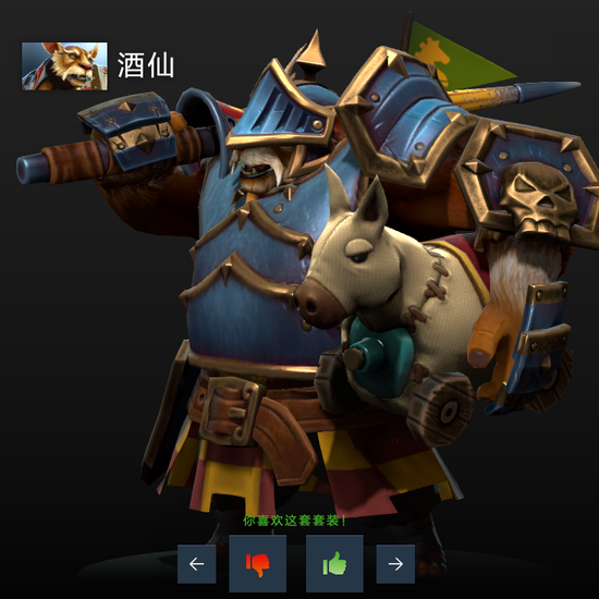 酒仙套装:王国卫兵风格的套装,亮点在于手中的酒桶增加了一件小马外套,庄严中带了一丝可爱。