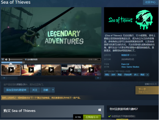 《盗贼之海》在Steam发售后热度高居不下,六月连续两周拿下销冠,很多萌新玩家想要入手游戏,毕竟价格实在是诱人——只需要116元,但这里需要明确的是:大家一定要确保自己的电脑能运行WIN10系统,配置过于老旧、只能上WIN7系统的玩家,可能享受不到游戏乐趣了:
