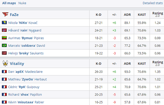 FaZe 0-2 Vitality(Nuke 15-19 ;Dust2 14-16 )