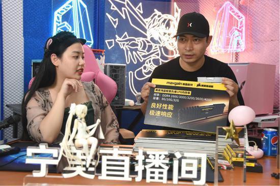 宁美连麦金邦业务经理David,David在直播过程当中讲解了其手中所拿内存条的材质、特点与性能,水友们听得津津有味,伴随着“宁美金邦大麦”的弹幕刷屏,宁美主播手机截图抽出幸运“键盘侠”,送出两个8G内存条。