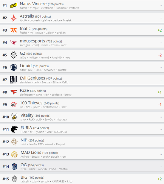 在EPL S11赛季欧洲区和美洲区的比赛结束之后,HLTV也公布了CSGO的最新世界排名。