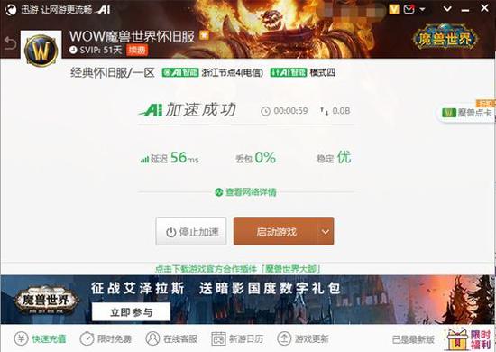 《魔兽世界怀旧服》作为一款承载了很多人热血青春的游戏,里面包含了很多玩家的快乐时光。现在P4阶段已经上线,如果玩家担心游戏拥堵造成的网络波动,可以使用迅游加速器进行加速。大家可以点击//partnerdownload.xunyou.com/specver/SEM/XunYou293910656.exe进行下载安装,迅游加速器作为加速器界的老牌子,伴随了许多《魔兽世界》玩家的青春,极速稳定,不卡顿不丢包,助力各位玩家流畅征战祖尔格拉布。