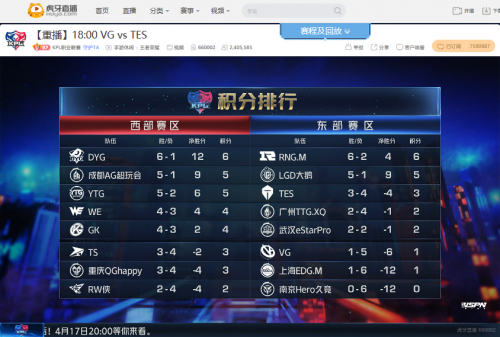北京时间2020年4月16日,虎牙KPL春季赛常规赛第五周第二日精彩开战。首战TS挑战西部王者DYG,深陷舆论风波的TS未能逆天改命,虽然闪光第三局超神后羿帮助队伍扳回一局,但决胜局DYG双射手体系发力终结比赛,最终TS一比三不敌DYG吞下连败。第二场TES迎战WE,状态复苏的TES在迷神和纵情带领下与WE上演一场势均力敌的巅峰大战,最终TES鏖战五局险胜WE。