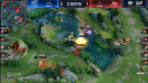 眼见战队陷入绝境,TS下路组合发力助队伍在第三局强势复苏。阿豆和闪光先是下路对线打开局面取得领先,然后果断开启推塔节奏帮助TS不断扩大领先。虽然中期DYG一度想要强开挽回颓势,但闪光后羿爆炸输出根本无人可挡,拿下风暴龙王后TS扳回一局。第四局DYG再度拿下双射手体系,虽然闪光虞姬前期再度Carry队伍,但无奈中期DYG双射手体系让TS正面肉盾无法阻挡,最终上路一波团灭DYG击败TS拿下胜利。