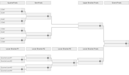 淘汰赛:晋级队伍根据小组排位进入双败淘汰赛胜者组,决赛为BO5