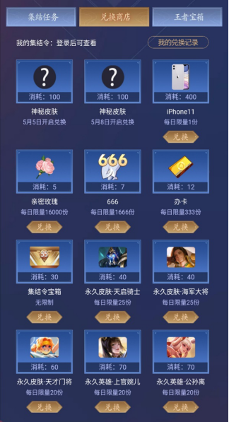 活动期间,完成每日任务,即可不断获取集结令,积累集结令即可兑换超多福利。