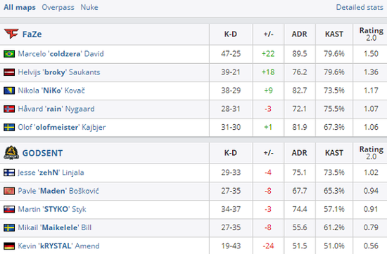 FaZe vs GODSENT 2-0(Overpass 16-6;Nuke 16-11)