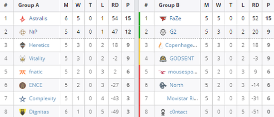近期状态爆棚的银河战舰FaZe与重回榜一的Astralis均表现出强大的战斗力,状态极佳的两队均用两张地图便取得比赛胜利。NiP与Heretics的比赛两队1-1言平后,图三将在次日比拼一决胜负。