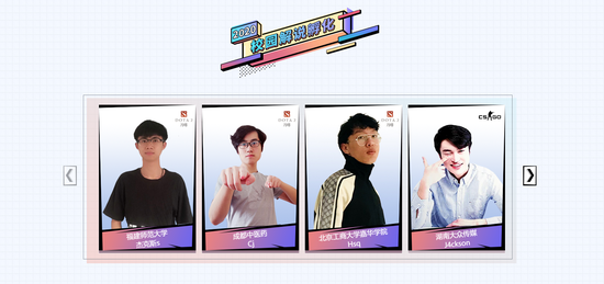 校园解说孵化活动也持续进行中!本周将有八位校园新锐主播参与进来,欢迎各位校友前去为你们的同学互动加油。如果你也想一试身手,就赶紧前往校园解说孵化页面报名吧!