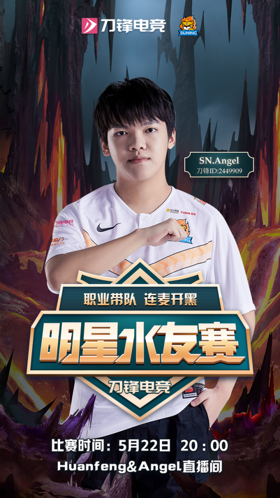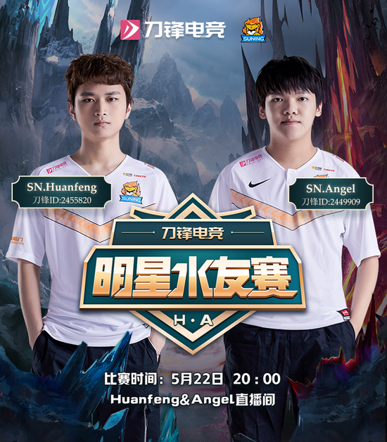 一个是呼声最高的新人AD,一个是实力超群的人气中单,两大国产双C的比拼,会擦出怎样的火花呢?请锁定5月22日晚8点,huanfeng&angel的直播间举办的刀锋电竞明星水友赛!同时,huanfeng和angel也会邀请水友成为自己的队友,一起开黑连麦!
