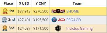 经历了近一个月的比赛过后,本次DPL-CDA联赛也决出了最后的冠军。EHOME战队凭借九战全胜的战绩成功获得联赛冠军,他们获得了27万奖金(冠军奖金及单局奖金总计)。而PSG.LGD则获得了亚军及19.5万奖金(亚军奖金及单局奖金总计),iG则获得了季军及17万奖金(季军奖金及单局奖金总计)。