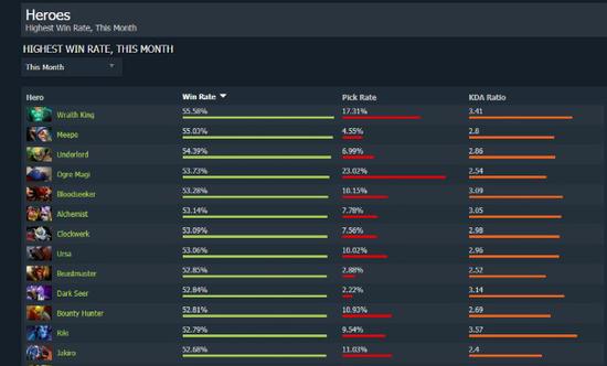 骷髅王这版本的高胜率和高选择率也不光是其英雄技能和属性方面的强势,上面说到的天堂之戟和刃甲两件道具在这个版本当中也是十分强势。