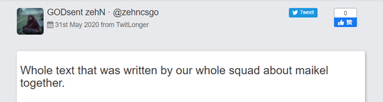 这篇Twitlonger原发布于twitter,但目前该twitter已删除。这也是zehN代表GODSENT整队发布的这篇文章。