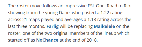 我们继续观看demo,调整他的走位。但在通往里约之路的比赛中,狙击手的数据很多时候接近指挥的数据,这是我们无法接受的。之后在TS,队友通知了我战队要招入Farlig代替Maiklele的消息,让我们在24小时内做出决定。在忍受了一年“lele call”(Maiklele自己命名的击杀方式,相当于是Maiklele自己的呓语)带来的错误信息之后,我觉得我们应该做出改变了。