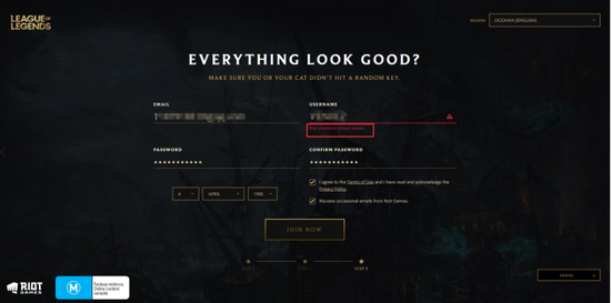 浏览器打开拳头账号注册官网:https://signup.oce.leagueoflegends.com/en/signup/index