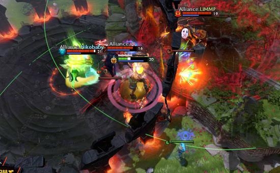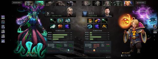 又是卡尔打DP——顺便一提,Nigma给W33选了三把卡尔,VP.P给Fn点了三把DP,两个英雄在团战中的作用完全不成正比。看看26分钟的肉山团战,卡尔直接被DP逼入墙角,冲脸秒杀。而在卡尔阵亡的同时,猴子也从大圣的手里抢到了不朽盾。一波团灭不足以将Nigma打死,那就再来一波!37分钟的下路团战,DM的人马用一记双踩将Nigma彻底毁灭。