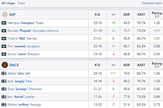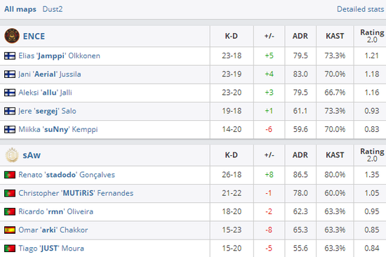 昨日被Vitality逼平的ENCE在今日的两场比赛中依然是倒霉蛋附体,无论是近期表现出色的NiP还是硬实力欠佳的sAw,ENCE总能给人一种我与谁都是五五开的尴尬境地。不过好在Godlu今日依旧成为全场最靓的仔,最终两张地图均以最高击杀带领团队走向胜利。